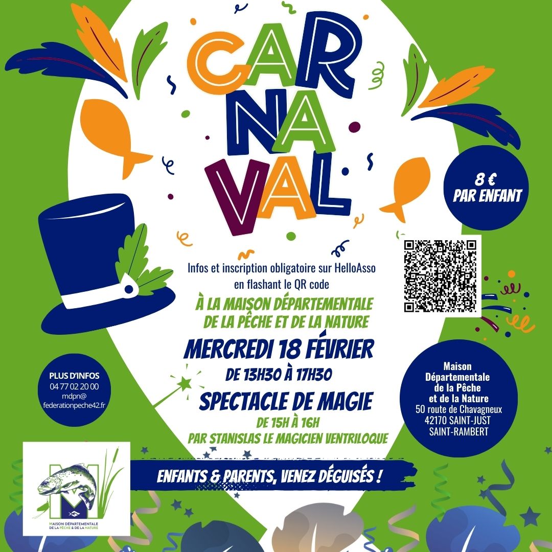 La Maison Départementale de la Pêche et de la Nature à Saint-Just Saint-Rambert, organise un événement pour Carnaval, le mercredi 18 février 2026 de 13h30 à 17h30.