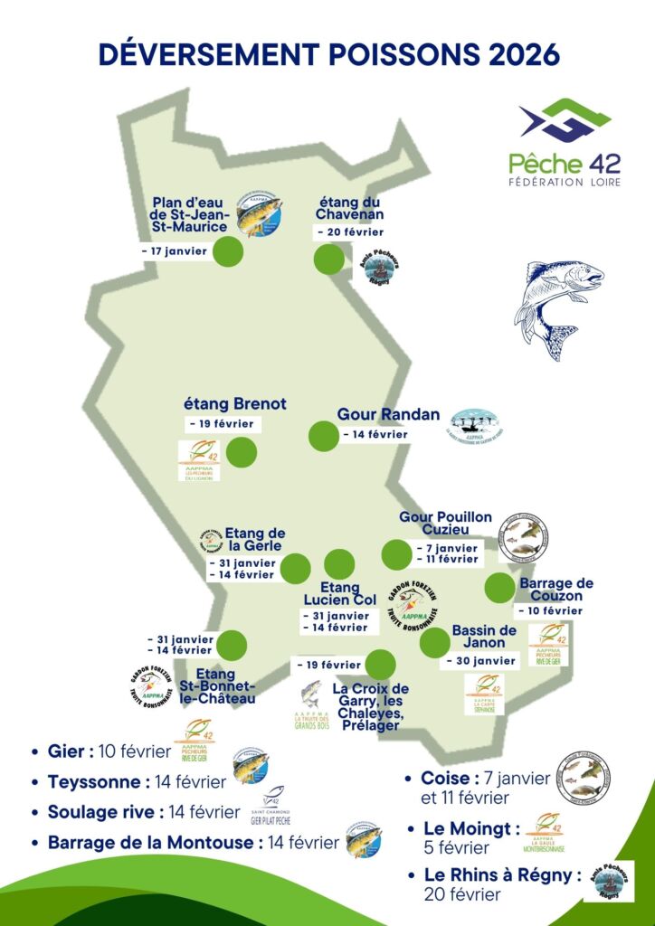 Comme chaque début de saison, certaines des AAPPMA déversent des truites arc-en-ciel de début de saison pour les cours d’eau, plans d’eau et barrages de seconde catégorie. Voici le planning pour ce début d’année :