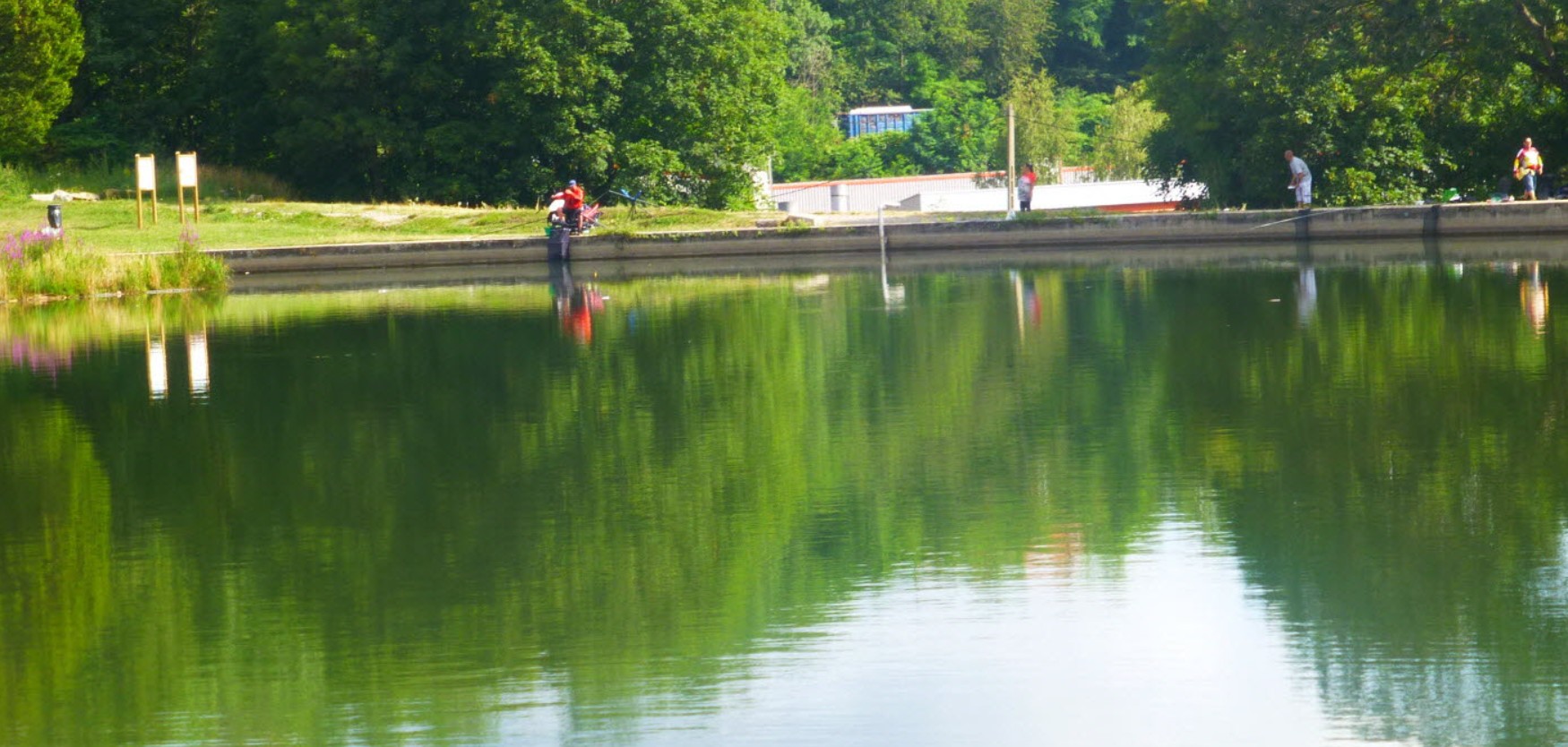 – Pêche et amorçage autorisés uniquement à partir des berges (canotage interdit), interdiction formelle de rentrer dans l’eau ;